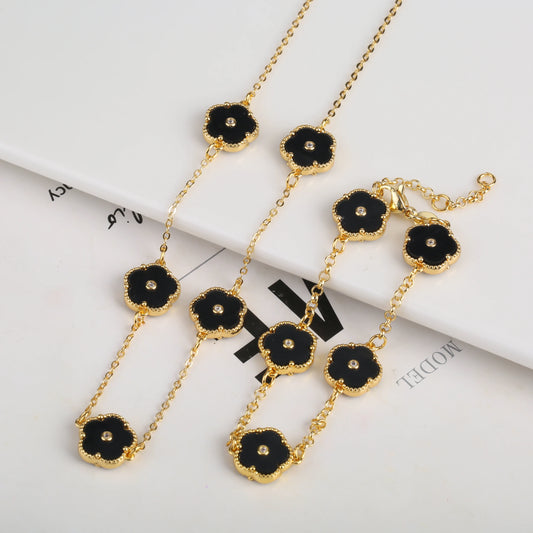 2PC Plant Plum Blossom Zircon Five Leaf Petal Flower Necklace Bracelet Jewelry Set Luxury Beimu Women'S Temperament Gift