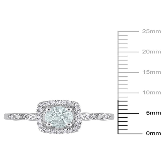 Women'S 3/8 Carat T.G.W. Aquamarine and 1/10 Carat T.W. Diamond Sterling Silver Halo Engagement Ring
